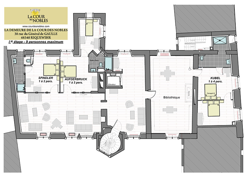 Nous vous proposons 8 chambres (1 à 4 personnes maximum), réparties sur le 1er et 2ème étage, possédant chacune une salle de bain. Ainsi qu’un dortoir pouvant accueillir 1 à 8 personnes avec 3 salles de bain. Vous pourrez profiter de la très grande cuisine et salle à manger pour déguster des plats traditionnels alsaciens, ainsi que d’un grand salon et de la bibliothèque d’origine pour vous détendre.